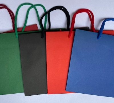 Torby wykonane są z kartonu 120 g, ze wzmocnionym dnem i mankietami 450 g.